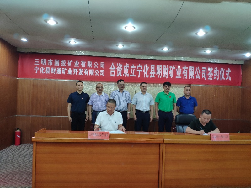 7月9日下午,三明m88官网直属企业市国投矿业有限公司与宁化县财通矿业开发有限公司,在宁化举行成立合资公司(宁化县明财矿业有限公司)签约仪式。市投资发展集团董事长李芳洲、宁化县政府县长姚文辉及相关领导出席了签约仪式。