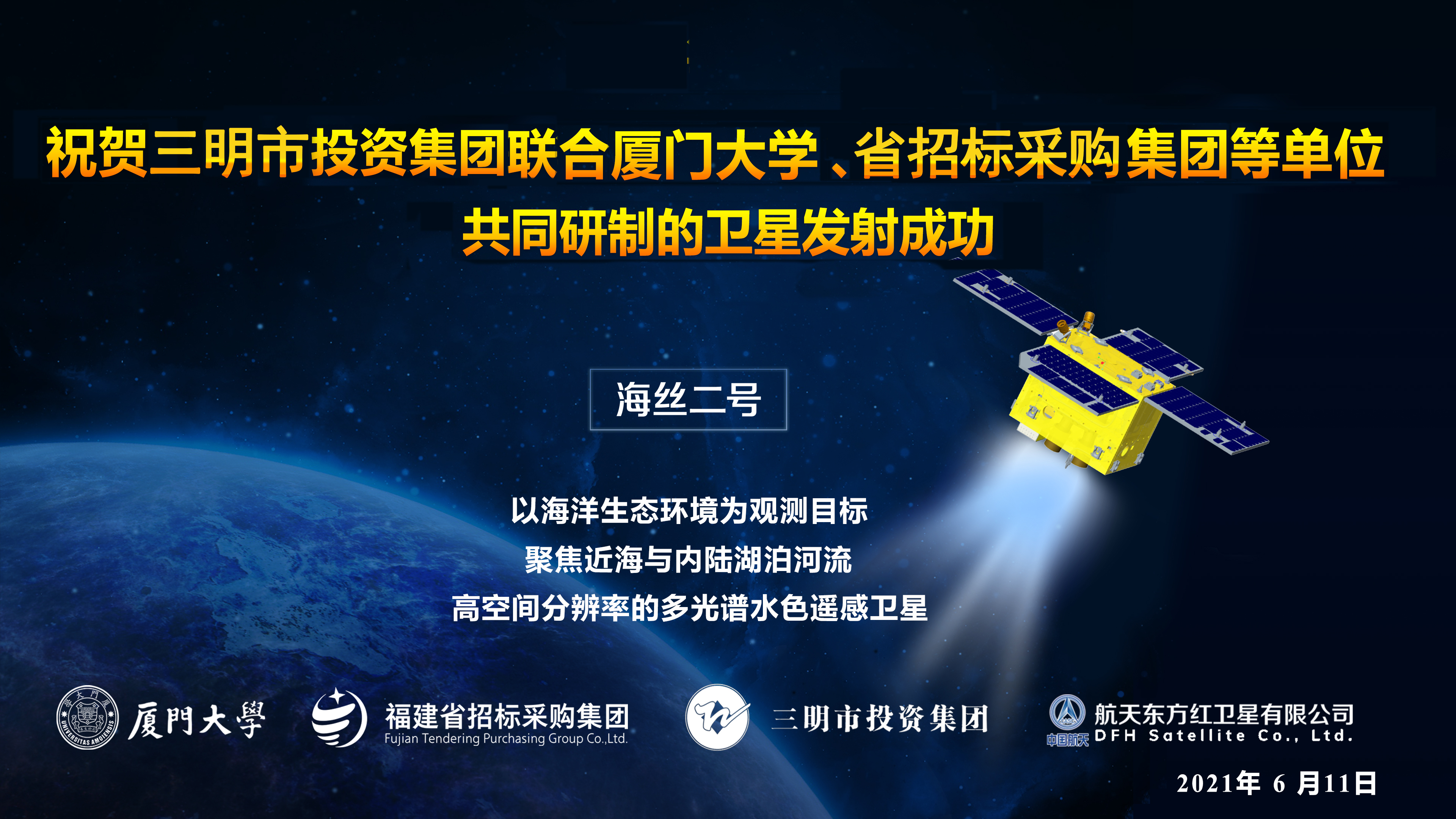 北京时间2021年6月11日11时03分,由厦门大学、福建省招标集团、三明m88官网等单位联合研制的“海丝二号”卫星,搭载长征二号丁运载火箭在太原卫星发射中心发射升空,卫星已进入预定轨道,圆满完成预定任务!这是m88官网与省招标集团合资的三明新基建公司成立一周年发射的第二颗海丝卫星。