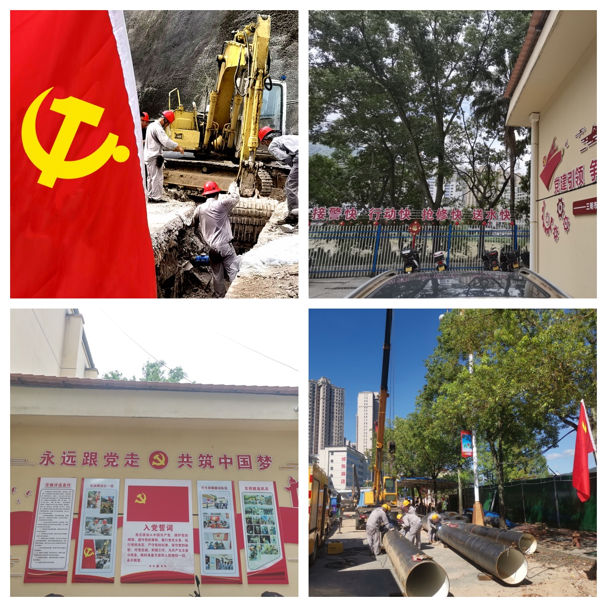 突出履职尽责,实现用心服务保供水。一是发挥党员模范作用,提高服务实效。在施工一线高高扬起“党员先锋号”的旗帜,在党员骨干的带动和努力下,近年来,完成了莘口水厂及荆东荆西片区改扩建工程、城关片区管网提升改造工程、大坂物流园给水工程、贵溪洋规划二至七路给水工程、2024年政府保交楼给水项目等多个重点供水项目建设。二是践行为民服务宗旨,解决用水问题。结合公司供水服务特点,通过创建OA系统党建版块,将党建工作与业务工作深度融合,不断促进供水抢修服务效能提升,切实解决城市居民用水方面的“急难愁盼”问题。公司践行“接警快、行动快、抢修快、送水快”供水服务承诺,全体党员长期战斗在一线,有效保障了市区方圆30多公里的供水管网安装、维修以及市区16万多户居民、企事业单位的安全用水。